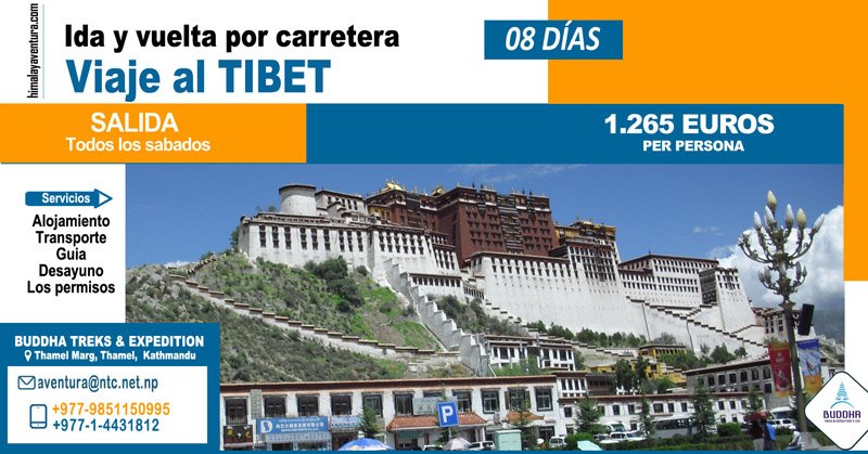 La estancia en Tibet  incluye 5 días de visitas, la ciudad sagrado Lhasa, Narbulinkha, el palacio verano de Dalai Lama. El templo de Jhokang, el templo más sagrado de Lhasa y en Barkor. Una visita de palacio Potala para disfrutarse a lo largo de visita de monasterios de Sera y Drepung. Tibet, el propio nombre del Tíbet evoca sentimientos de enigma y misterio en las remotas y aisladas cordilleras Himalayas. Una tierra de antigua cultura budista, artísticos monasterios y senderos de caravanas centenarios; Tíbet es un destino fuera de la norma.
